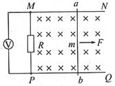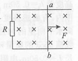 如图所示,水平旋转的光滑平行金属轨道上有一质量为m的金属棒ab,导轨一端接有电阻R,其他电阻不计,磁感应强度为B的匀强磁场垂直平面向下,金属棒ab在一不平恒力F作用下由静止起向右运动,则[