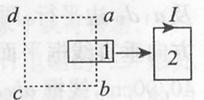 如图所示,有界匀强磁场垂直于纸面,分布在虚线所示的矩形abcd内,用超导材料制成的矩形线圈1和固定导线圈2处在同一平面内,超导线圈1正在向右平动,离开磁场靠近线圈2,线圈2中产生的感应电流的方向如图所示,依据这些条件[
