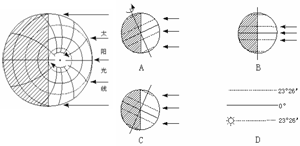 (1)此图所画的大地球表示__________月__________日、节气为_________的日照状况图;(3分)