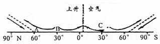 (2)副热带高压带(1分) 东北信风(带)(1分)西南(风)(1分)