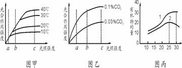 (1)①由图甲可知,光合作用强度和光照强度的关系是 。
