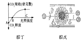 ②戊图是 (C3 或 C4)植物的叶片结构,该植物②处的细胞能否进行完整的光合作用?
