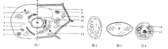 52.(11分)图1是两种高等生物细胞亚显微结构模式图。图2-4是图1中部分结构的放大,据图回答。([ ]内填图中标号, 上填适当内容的文字。)