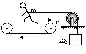 为m2的重物,人用力向后蹬使传送带沿顺时针方向转动,