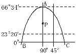 读右图,AB弧是晨线,AC弧是昏线。据此回答22-23题。