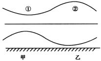 A.①处气压比②处高 B.甲地为陆地,乙地为海洋