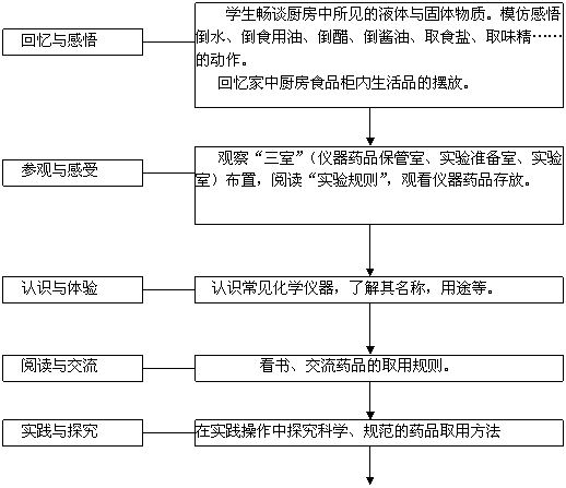 九年级的学生也可能是第一次走进化学实验室,但绝不是第一次走进厨房,也绝不会是第一次取用固体、倾倒液体。老师在本课中把“厨房--化学实验室”联系起来了,有效地缩短了“学生与新知识、新技能”之间的心理距离,学生在参观化学“三室”过程中,在陌生的环境中又有几份“似曾相识”的感受。