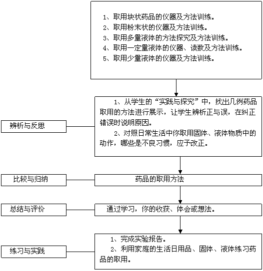 1、认识常用的化学仪器,知道药品的取用规则,初步学会药品的取用方法。