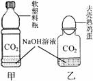 1、实验(如图)观察甲乙中发生的现象。 2、清水变“牛奶”:吹入CO2使澄清石灰水变浑浊 问题:大家想一想,这些神奇的现象存在的反应原理是什么? |