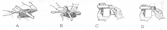 82.为使金属工件符合设计所要求的形状和粗糙度,往往需要进行挫削和检查工作面的垂直度。下列是有关挫削和用90°角尺检查工作面垂直度的图示,其中操作正确的是( )