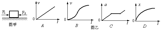 1.如图甲所示,放在光滑水平面上的木块受到两个水平力F1与F2的作用,静止不动,现保持力F1不变,使力F2逐渐减小到零,再逐渐恢复到原来的大小,在这个过程中,能正确描述木块运动情况的图象是图乙中的( )
