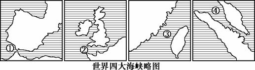 40.从B大洲最大港口至我国最大港口,沿最短海上航线所经过的海峡依次是下图中的