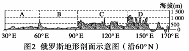 41.读“俄罗斯地理简图”及“地形剖面图”,回答问题。(14分)
