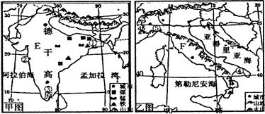 42.甲乙两图分别为印度和意大利的地理简图,读图回答:(9分)