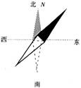指南针静止时,其位置如图中虚线所示.若在其上方放置一水平方向的导线,并通以恒定电流,则指南针转向图中实线所示位置.据此可能是 ( )![]()