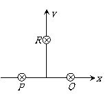 如图所示,三根通电长直导线P、Q、R互相平行,通过正三角形的三个顶点,三条导线通入大小相等,方向垂直纸面向里的电流.已知通电长直导线产生磁场的磁感应强度B=kI/r,I为通电导线的电流强度,r为某点到通电导线的垂直距离,k为常数;则通电直导线R受到的安培力的方向是( )![]()