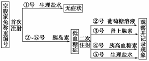 (3)二次注射后,低血糖症状最先得到缓解的是 号家兔;若②号家兔出现糖尿,则该兔的尿量将会 ,原因是