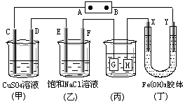 D.装置(丁)中Y极附近红褐色变深,说明氢氧化铁胶粒带正电荷
