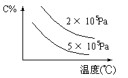 下图表示的平衡混和物中,产物X的百分含量在不同压强下随温度改变的情况,在下述哪一个可逆体系中X可代表用横线标明的物质 ( )