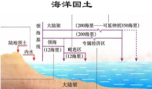 “海洋国土”,它不仅仅包括一国的内水和领海,它是一国内海、领海、毗连区、专属经济区(EEZ) 、大陆架等所有管辖海域的形象总称,是一个集合概念。