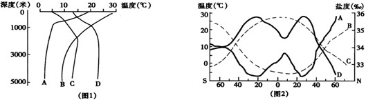 2.(图2)是海洋表面盐度随纬度分布的曲线图,其中正确的是( )