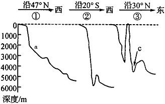 读大陆边缘向洋盆过渡的地形剖面示意图,回答3-4题。