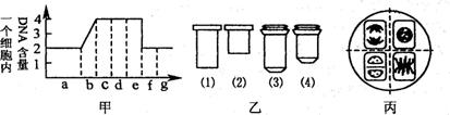 13、下面甲图示洋葱根尖分生区连续分裂的细胞在各个时期细胞核内DNA含量的测定结果,乙图是一组目镜标有5X和16X字样、物镜标有10X和40X字样的镜头,丙图是某同学在乙图中选用的一组能放大160倍的镜头组合所观察到的图像。欲将丙图视野中处于甲图e时期的细胞移至视野中央进行640倍高倍镜观察,正确的镜头组合及操作程序应是