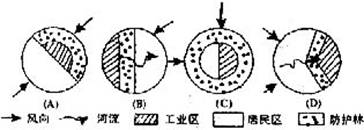 6、指出下列四幅图中,哪一幅城市功能分布是较合理的
