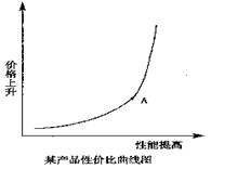 科学、实用、安全、经济、美观、新颖等是产品设计评价的基本原则,但评价原则之间常存在矛盾。要提高产品的性能,就要增加成本,使产品的价格上升;要考虑经济性原则,就制约了产品性能的提升。此时最好的办法是分析产品的性价比,找到一个较好的平衡点。如图:A点就是一个较好的选择点。这启示我们,企业确定一个好的选择点所运用的哲学方法是( )