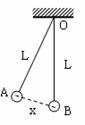 15. 如图所示,A、B是带有等量的同种电荷的两小球,它们的质量都是m,它们的悬线长度是L,悬线上端都固定在同一点O,B球悬线竖直且被固定,A球在力的作用下,偏离B球χ的地方静止平衡,此时A受到绳的拉力为F,现在保持其他条件不变,用改变A球质量的方法,使A球在距B为χ/2处平衡,则A球受到的绳的拉力为原来的________倍。