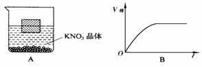 9.一木块漂浮于50g的KNO3饱和溶液中(见下图A),当温度改变时(不考虑由此引起的木块和溶液体积的变化),木块排开液体的体积(V排)随时间(t)发生了变化(如图B所示)。