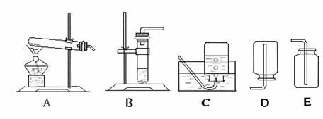 (4)假如小明的猜想是正确的,他欲用上述两种试剂制取氢气,请你帮助他从下图中选取制取装置:发生装置为(填装置标号,下同)_________________, 能收集氢气的装置为______。