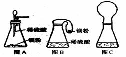 (02福州市)甲、乙两同学分别按图A、图B装置做质量守恒定律的探究实验。他们俩的做法是:①将反应前的装置放在各自天平的左盘上,往右盘上加砝码使天平平衡。②取下装置:甲挤压胶头;乙将气球内一定量的镁粉倒入瓶中,观察到气球逐渐胀大,最终如图C所示。③把装置放回各自的天平上。待天平平稳后,两同学的天平所处的状态( )。