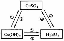 例2:(2005年广西南宁市课改实验区)下图给出三种物质,如果按概率统计,它们之间应该有六种相互转化的可能。请回答下列问题: