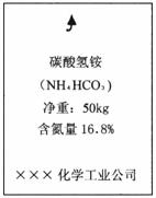 本题以标签的形式呈现了碳酸氢铵的信息,要求根据提供的信息和数据进行有关的计算。从分子式来看,碳酸氢铵含有四种元素;其相对分子质量为:14+1×4+1+12+16×3=79;由于碳酸氢铵中氮元素的质量分数为: