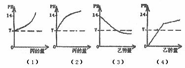 例2:(2005年·甘肃兰州) 甲、乙、丙分别是酸或碱的水溶液,pH值依次为1,5,14。下列图形合理的是( )