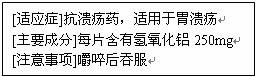 例5:(2005年·广东茂名)人胃酸(主要成分是盐酸)过多,会引起很胃病。下图为某抗酸药包装标签上的部分文字,请回答下列问题。
