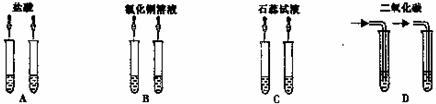 3.(2005年·江西省课改实验区)小强同学为了区别氢氧化钠溶液和澄清石灰水,设计了如下图所示的四组实验方案,其中能达到目的的是( )