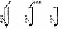 7.氧化铜是一种黑色固体,可溶于稀硫酸。某同学想知道是稀硫酸中的哪种粒子(H2O、H+、SO42-)能使氧化铜溶解。请你和他一起通过图中I、Ⅱ、Ⅲ三个实验完成这次探究活动。![]()