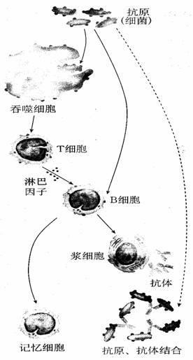 ,产生抗体,小部分形成 。抗体可以与病原体结合,从而抑制病原体的繁殖或对人体细胞的黏附。