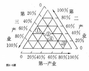 下图表示①②③④四个地区三大产业的就业构成。读下图,回答6-7题。![]()