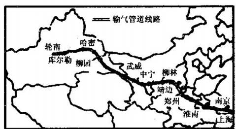 读我国西气东输主干管线工程示意图,完成33-36题。
