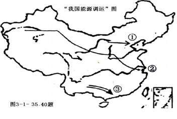 37.图中①、②、③三条运输路线输送的主要能源分别为