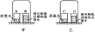 (1)实验:在盛有少量蒸馏水的小烧杯中注入2-3滴酚酞试液,现向其中滴加稀氨水,可以看到的现象是,由此得到的结论是______。