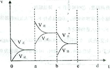 2SO3(g) ΔH<0达到平衡时,由于条件改变而引起反应速度和化学平衡的变化情况,a b 过程中改变的条件可能是_________;b c过程中改变的条件可能是________;若增大压强时,反应速度变化情况画在c-d处。
