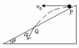 7.(高淳中学)如图所示,从倾角为θ的足够长的斜面顶端p以速度V抛出一个小球,落在斜面上某处Q点,小球落在斜面上的速度与斜面的夹角α,若把初速度变为2V,则:( )