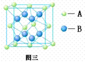 (2) 图三为某晶体的晶胞结构,已知每个B位于周围紧邻的4个A原子构成的正四面体的中心,则每个A周围最邻近的B有_____个,在该晶体的化学式为____________。