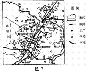 图3为鞍山市部分工业企业分布图。回答7-10题。