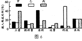 图6中甲、乙、丙反映了三类工厂的投入构成情况,据此回答18-20题。