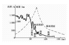 邢台市地处河北省南部,太行山脉南段东麓,华北平原西部边缘。下图为邢台地区的一次特大暴雨剖面图,读图完成58-60题。